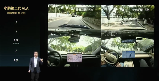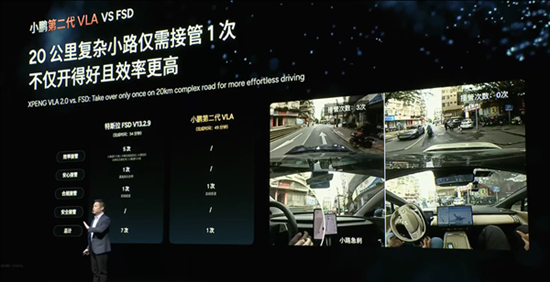 小路NGP:丝滑贯穿高速-城市-小路/园区,复杂小路平均接管里程提升13倍,20公里复杂小路仅需接管1次,何小鹏实测复杂小路场景,FSD接管5次,第二代VLA仅接管1次。