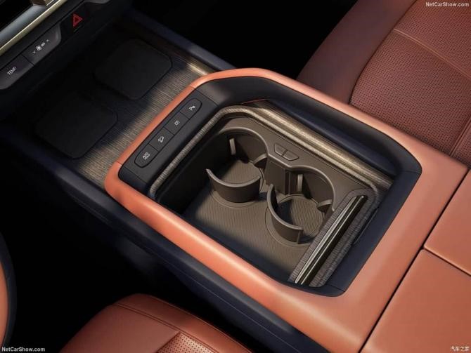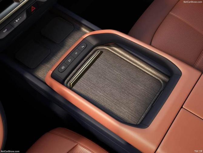 车内将会采用环抱式座舱设计,前排配备双联屏以及三辐式多功能方向盘,并且在中控台处也保留了大量实体按键方便操作。中央岛台区域配备手机无线充电以及扶手,中央储物格提供灵活布局方便不同消费者的用车习惯。车内采用2+2+3布局,前排座椅支持加热、通风等功能,二排座椅则会提供电动调节以及小桌板等。