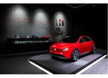 马自达Vision X-Compact概念车整体外观采用简洁圆润的造型,新能源车型的属性很强。车辆前脸的垂直的日间行车灯延伸至大灯组,呈现出獠牙的造型。车辆下方配备进气格栅,周围整体线条造型非常的圆润光滑,雕塑感十足。车身侧面依旧是极简的设计,小巧的车身比例配合稍稍突出的翼子板,加上高腰线的设计,整车十分灵动。车辆尾部C柱的设计十分有特点,呈现出大溜背的趋势,并且与车身同色,与黑色车顶和车窗形成鲜明对比。