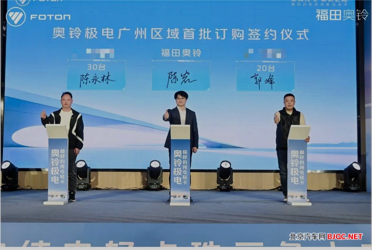 发布会最后,福田奥铃营销副总裁陈岩与多家物流企业代表完成签约仪式,首批奥铃极电即将投入珠三角运营一线,为区域物流用户提供高效、可靠的纯电运力支持。