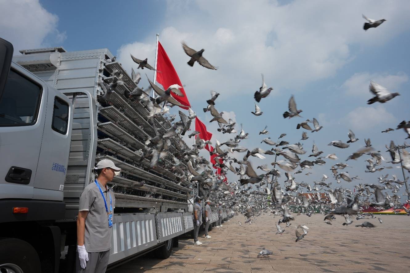 作为仪式上的“特殊演员”,和平鸽天性敏感,对噪音敏感,且颠簸过大会引发晕车、撞笼等情况,一羽鸽子发出急促“咕-咕-咕”的惊恐叫声就能引发鸽群应激,运输过程需底盘稳健、动力输出平顺、加速快、噪音小,方能护航和平使者以最从容的姿态振翅高飞。这已是北汽福田第十五次肩负此项重任,对于这家将“国典品质”融入血脉的首都国企而言,每一次护航,都是一场对国典标准的不懈追求,其凭借深厚的技术积淀,以及贯穿研发、供应链、生产制造到品质检测的严苛标准体系,再次信守 “零故障、零缺陷、零失误”的九字承诺。
